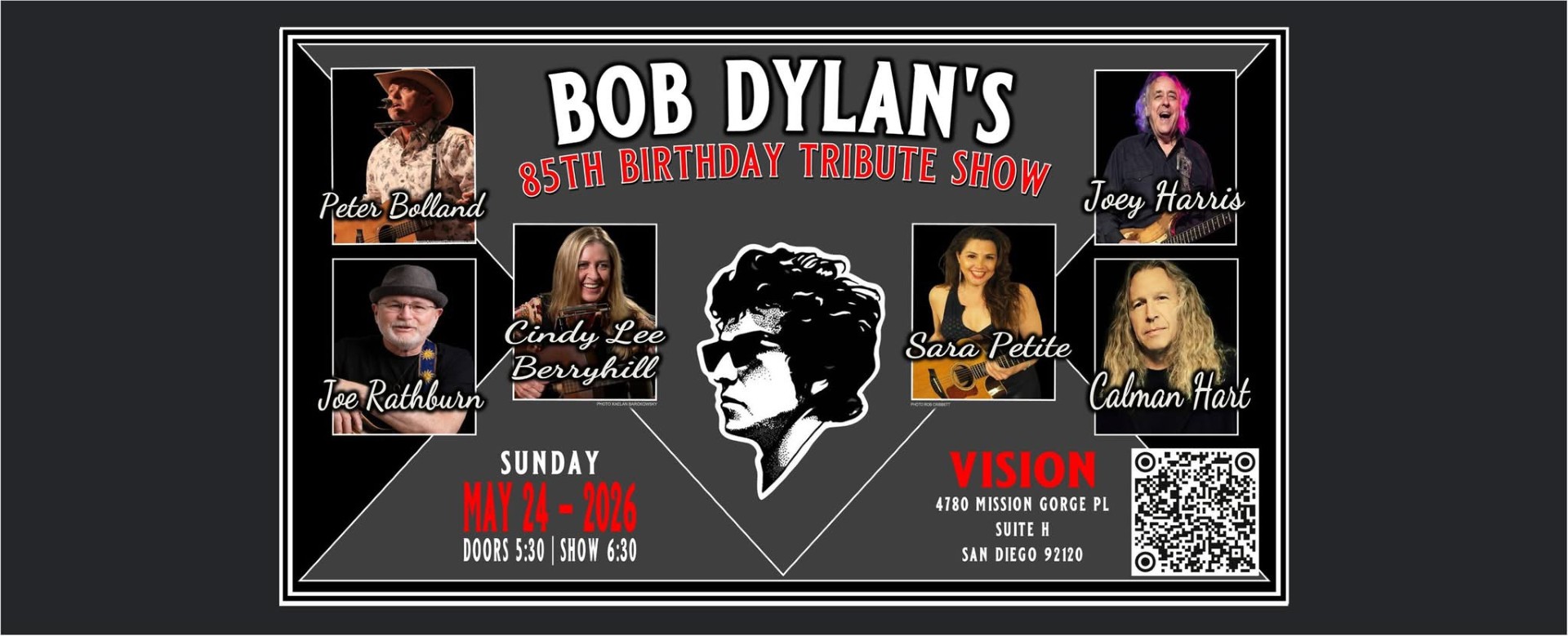 Vision Mission Valley 4780 MISSION GORGE PLACE, SUITE H, SAN DIEGO, CA, United StatesMusic & ConcertsSunday, May 24, at Vision a tribute to Bob Dylan in honor of his 85th birthday. We’ll be celebrating with three‑song sets from Cindy Lee Berryhill, Peter Bolland, Joey Harris, […]